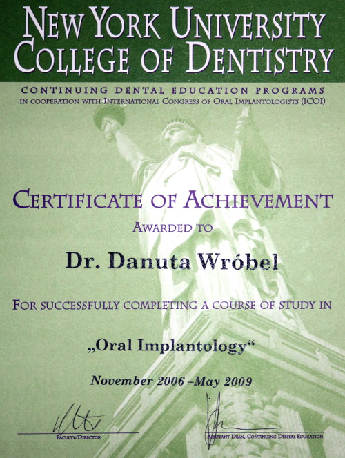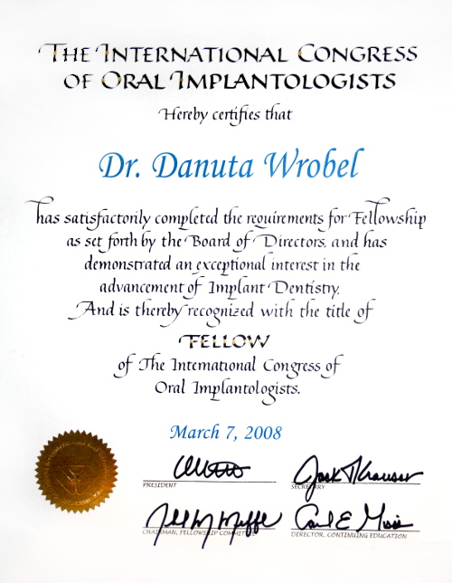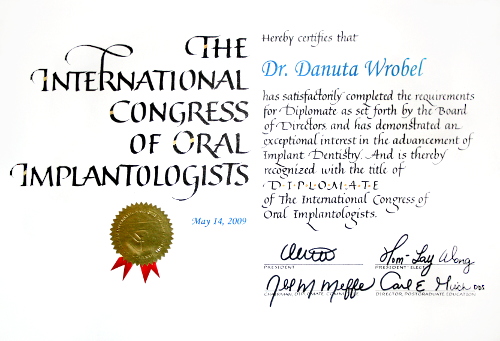 - Prestigious Diplomate title from the International Congress of Oral Implantologists