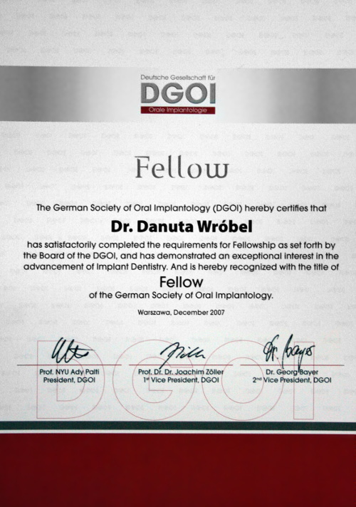 - Fellow title awarded by the German Association of Oral Implantology (DGOI)